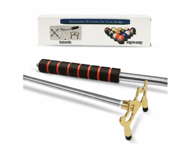 Использование древка позволяет делать удары кием по далеко стоящему шару быстро, удобно и эффективно. С помощью древка с насадкой можно сыграть любой шар на бильярдном столе, в какой бы точке игрового поля он не находился. Телескопическая рукоятка древка позволяет изменять длину устройства одним движением руки в диапазоне от 33,5 см до 152 см, в комплекте с инструментом идет металлическая насадка - мостик корона латунь на резьбе. Универсальная резьба позволяет использовать любые другие насадки - крест, паук и тд.