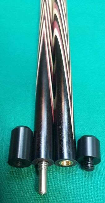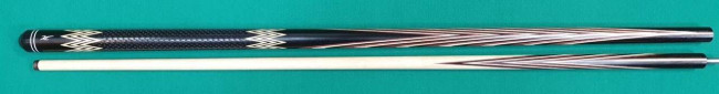Кий "Каюков Классик плюс" Чёрный граб / амарант/ белый граб, 2 части, гравировка "Огоньки с коронками"