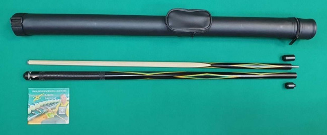 Комплектность: Логотип - значок "КС", жёсткий футляр, номерной паспорт, гравировка индивидуального номера кия соответственно паспорту кия, защитные колпачки для скруток, гравировка турняка - "Чешуя с колечками", предусмотрена возможность прикрутить удлинитель (для этого нужно сначала выкрутить у кия пяточку).