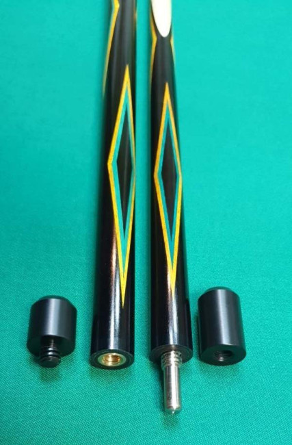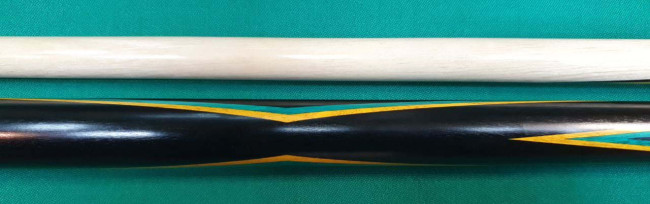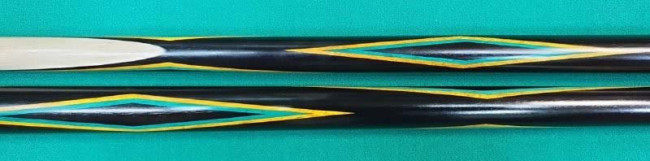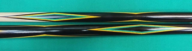 Кий "Каюков Питон" Чёрный граб/ бирюзовый граб/ жёлтый граб, гравировка "Чешуя с колечками", 2 части