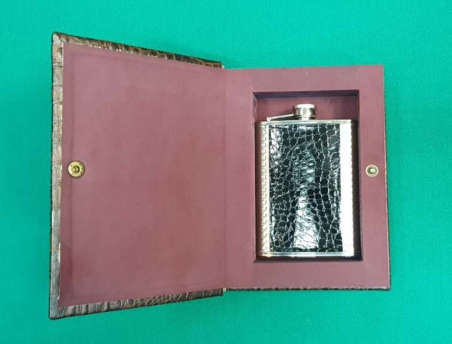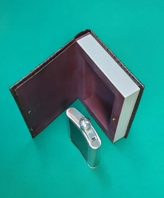 Книга - футляр с фляжкой. Табличка с гравировкой: Пособие для профессиональной игры в бильярд. "Читать" рекомендуется на троих ! Возможны варианты гравировок предложенные заказчиком.